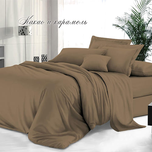 Комплект постельного белья Sateen De Luxe, 1,5 - спальный гладкокрашеный, наволочка 70х70 см, какао и карамель