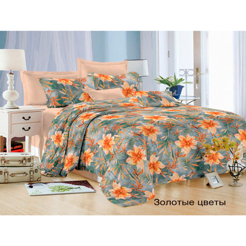 Комплект постельного белья Satin collection 2 спальный, золотые цветы
