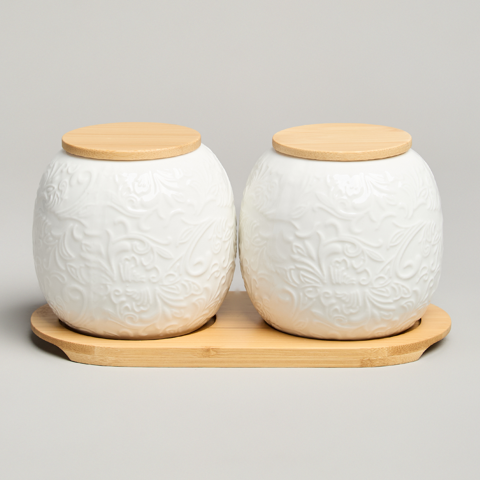 НАБОР БАНОК LEFARD, MUSE, С ДЕР.КРЫШКОЙ НА ДЕР.ПОДСТАВКЕ 2 ШТ. 19, 5*9, 5 СМ 400 МЛ