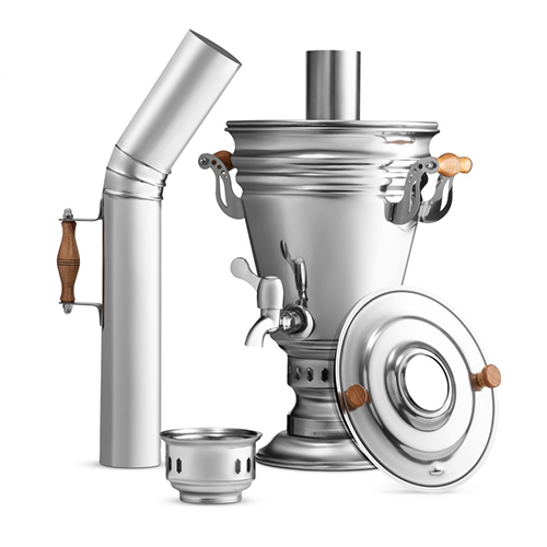 У этой модели самовара упрощенная в производстве конструкция ножки и короны, так-же отсутствует декоративная штамповка на ручках, что делает его более скромным и минималистичным. Тем не менее, качество материалов и изготовления остается высоким, что обеспечивает надежность и долговечность самовара. Несмотря на свою более простую форму, этот самовар все равно прекрасно подходит для приготовления чая и создает уютную атмосферу в доме или на даче.