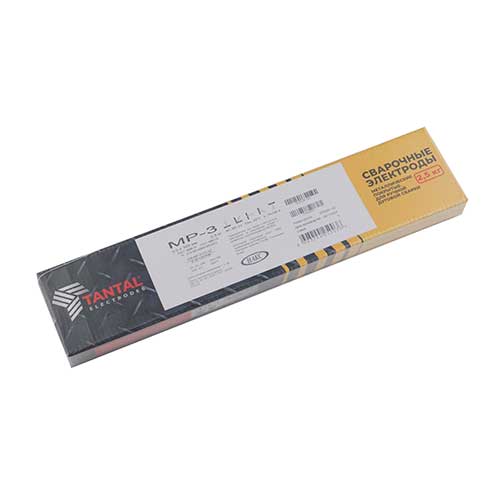 Электроды МР-3 (3 мм; 2.5 кг) Тантал - электроды с рутиловым покрытием данной марки предназначены для сварки ответственных конструкций из углеродистых и низколегированных сталей. Сварка во всех пространственных положениях, кроме вертикального сверху-вниз, на переменном и постоянном токе обратной полярности