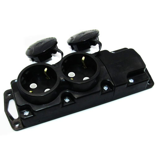 Колодка для удлинителя 2-местн с/з BYLECTRICA каучук F-222k 18,8х7см с закрыв. розетк. Р16-415, 1/28