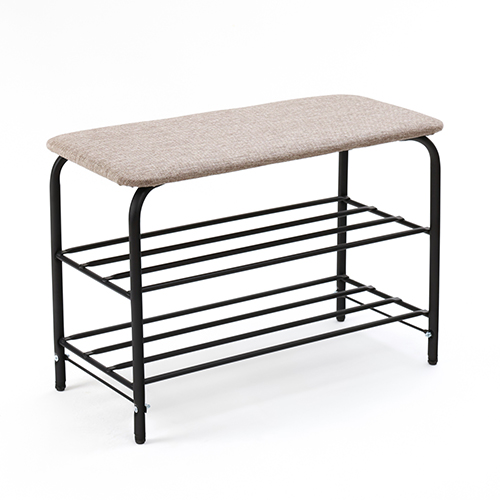 Банкетка, обувница, 460х640х310 мм черный матовый/лен натурель, ткань рогожка, LAKSI, 2/2
