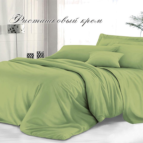 Комплект постельного белья Sateen De Luxe евростандарт, гладкокрашеный, наволочка 70х70 см, фисташковый крем