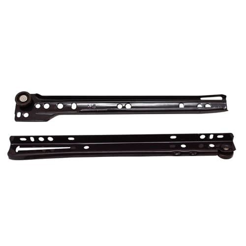 Направляющие роликовые для мебельных ящиков. Выдвижной механизм одинарный, неполного выдвижения, с самозатягиванием, двойным остановом и защитой от выкатывания. Несущая способность (на пару) до 20 кг.
