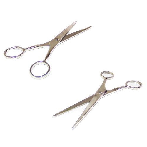 Парикмахерские ножницы, предназначены для стрижки волос. Классические - с симметричным расположением колец. Стандартная заточка - выполняется под углом 45-50 градусов. При этом режущая кромка представляет собой ровную полосу шириной около 1 мм.