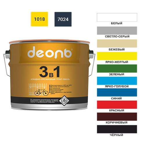 Грунт-эмаль 3в1 белый 3кг по ржавчине быстросохнущий, ДЕОЛЬ, ГОСТ, 1/4