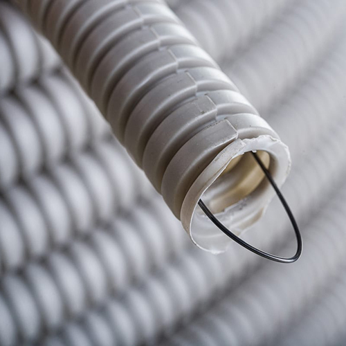 Труба ПВХ с протяжкой применяется для скрытой или открытой электропроводки по стенам, потолкам, полам жилых, административных и промышленных помещений.