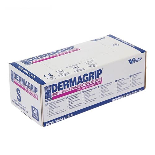 Перчатки латексные DERMAGRIP S, в блоке 50 шт, Цена за 1 пару, 25/250
