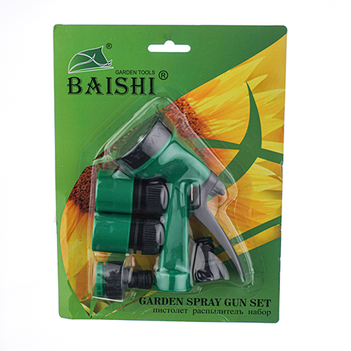 Набор для полива 5 предметов, пистолет 8 реж, адаптер на 1/2, адаптер с переходником 1/2-3/4, коннекторы с быстросъемом на 3/4, 1/50