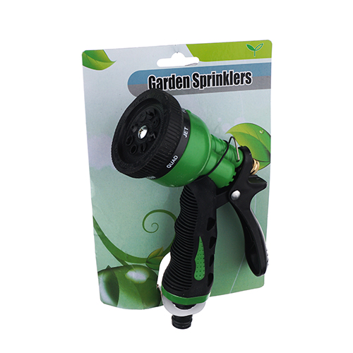 Разбрызгиватель-пистолет 8 режимов, прорезиненная ручка, латунный регулятор, с адаптером, 1/100