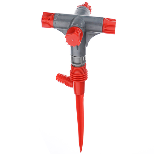 Вращающийся фонтан-разбрызгиватель с двумя регулируемыми "лопастями". Закрепляется на пластиковой основе типа "колышек". Круговой разбрызгиватель сочетают в себе неподвижное основание и вращающуюся верхнюю рабочую часть, где размещены разбрызгивающие головки.