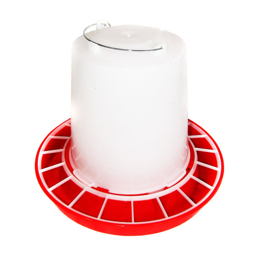 Поилка для птиц - состоит из бачка-конуса и крышки-дна с решеткой.  В основании поилки расположена герметичная вкручивающаяся пробка, что позволяет наполнять поилку водой, не разбирая всей конструкции. Вода заливается в бачок, плотно закрывается крышкой и переворачивается. Можно использовать для переноски ручку сверху. Подходит для цыплят и взрослой птицы.