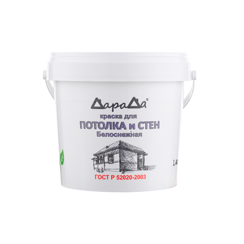 Краска для потолка и стен 1,4кг, ДАРАДА, ГОСТ акриловая белоснежная, 12/12