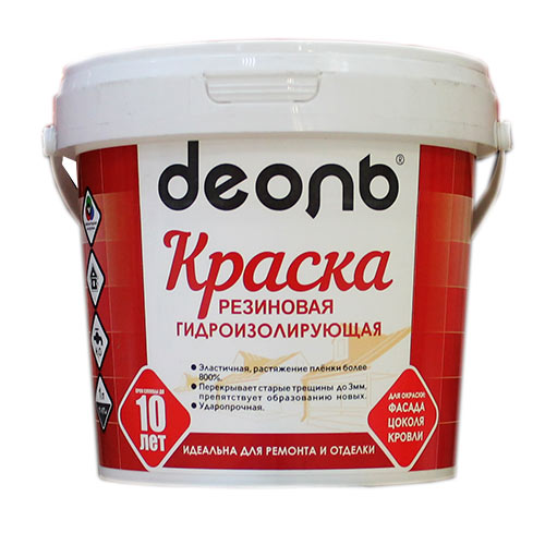 Краска резиновая 0,9л В/Д, ДЕОЛЬ, ГОСТ гидроизол. супер белая, 6/6