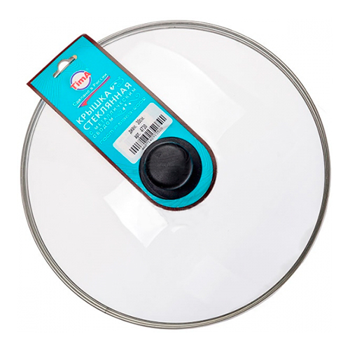 Крышка "TimA" изготовлена из жаропрочного стекла и снабжена металлическим ободом, который обеспечивает плотное прилегание крышки и предохраняет бортики посуды от повреждений. Эргономичная пластиковая ручка предотвращает выскальзывание. Имеется отверстие для выпуска пара.