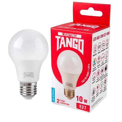 Лампочка светодиодная E27 10Вт 6500К TANGO LED A60, 10/100
