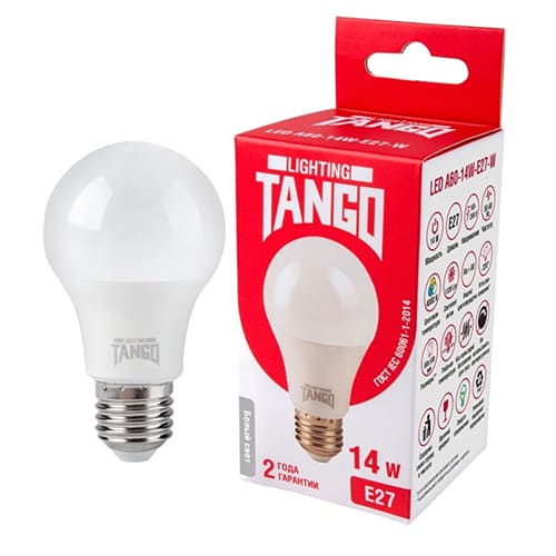 Лампочка светодиодная E27 14Вт 4000К TANGO LED A60, 10/100