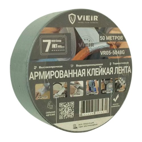 Скотч армированный 50ммx50м лента клейкая VIEIR VR05-5048G, серая, 6/36