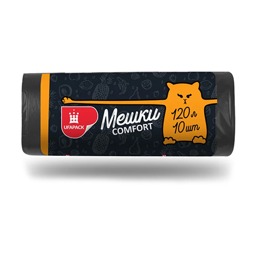 Мешки для мусора 120 л 10 шт 16,5мкм Уфа Пак ПНД, черный, 1/21