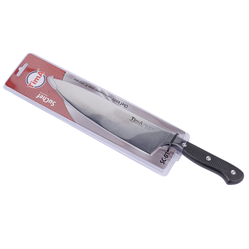 Универсальный кухонный шеф-нож для нарезки Тима SuChef— надежный помощник для приготовления пищи. Его лезвие выполнено из высококачественной нержавеющей стали 3Cr13, обладающей отличной прочностью и устойчивостью к коррозии. Бакелитовая ручка, Нож долго держит заточку