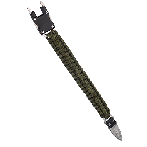 Браслет-паракорд с клинком представляет собой веревку, сплетенную в компактный аксессуар. При необходимости браслет можно размотать за 30 секунд и использовать в качестве троса, жгута или ловушки. Браслет сделан из паракордовой веревки - это один из самых прочных материалов для плетения узлов, используйте в качестве охотничьего или рыбацкого инструмента, также для тренировочных целей, идеально подойдет для походов в лес или на лыжах. Мужской шнур оснащен надежным зажимом фастекс, в который как в чехол помещается лезвие ножа.