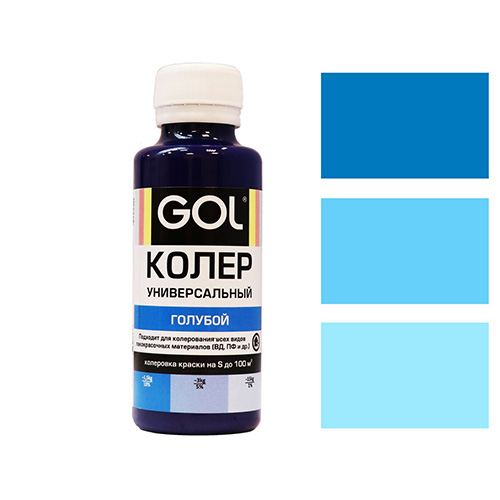 Паста колеровочная универсальная "GOL" (100 мл) применяется для колерования лакокрасочных материалов (красок, эмалей, лаков, шпатлевок, затирок, штукатурок, гипсовых смесей, пропиток для древесины, грунтовок), кроме составов на основе масел и применением пасту необходимо перемешать, хорошо встряхнув флакон. Ввести пасту в