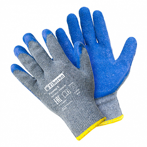 Перчатки хлопчатобумажные с полиэстером с текстурированным латексным покрытием Fiberon подходят для продолжительных тяжёлых работ, где требуется высокая износостойкость: работы с камнем, металлом, строительства. Полное текстурированное латексное покрытие исключает проскальзывание предметов, смягчает нагрузку на руку. «Дышащий» материал основы обеспечивает комфорт во время продолжительной работы.