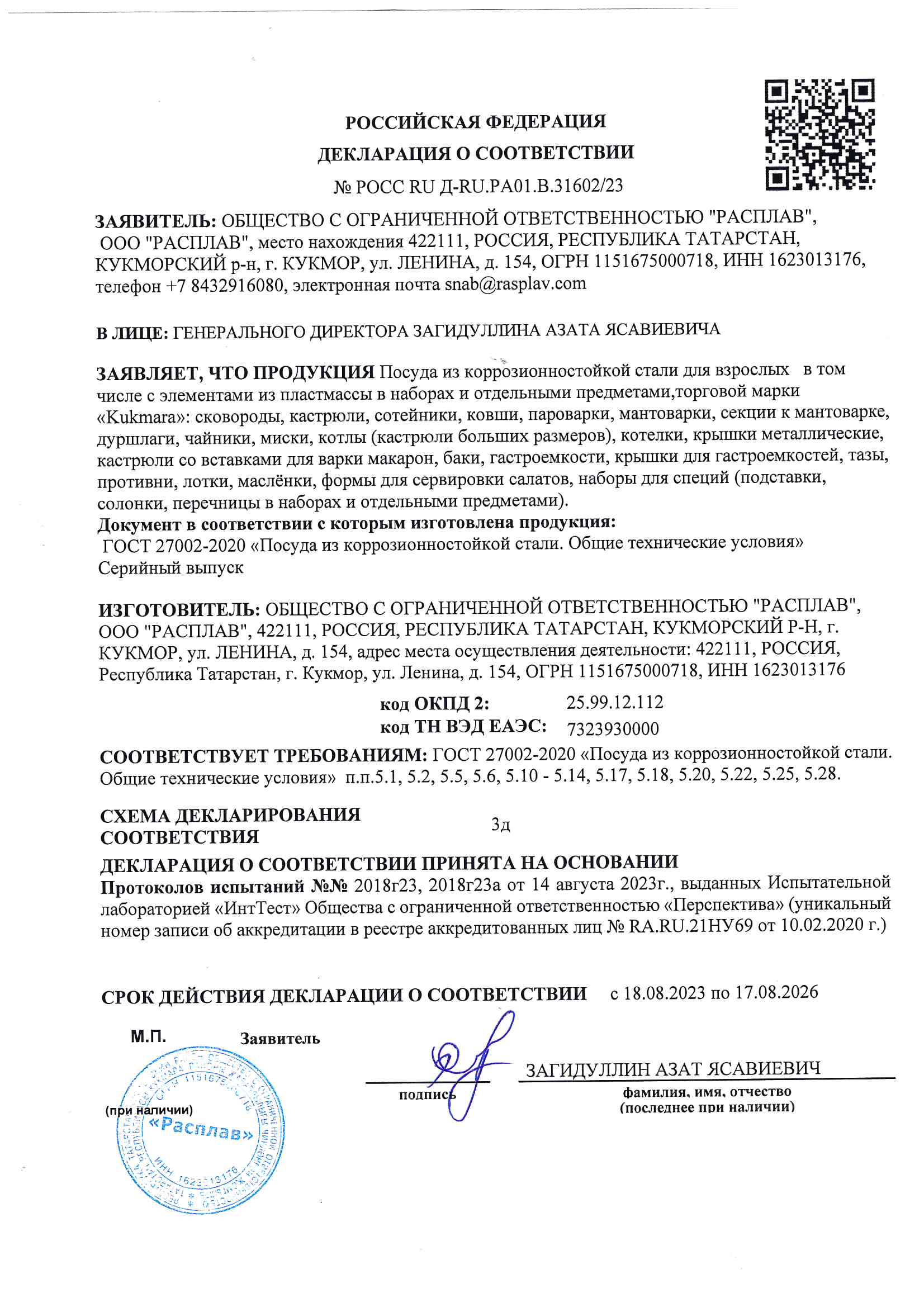 значительная толщина стенок и дна исключает деформацию корпуса кастрюли, гарантирует ее долговечность;