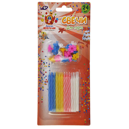 Свечи для торта 24шт в 1 блистере, 4цвета, в упаковке 24 блистера, 24/288