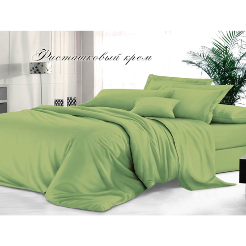 Простыня евростандарт 220х215 см, гладкокрашеный сатин, фисташковый крем