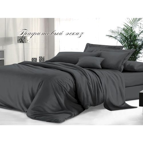 Простыня на резинке 180х200х30, гладкокрашеный сатин, графитовый эскиз