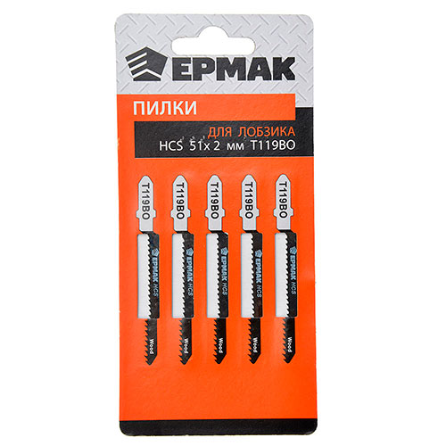 для лобзика Ермак, HCS EU 51х2мм. , T-119ВО, дер. , фиг. рез. , 5шт. , 1/400