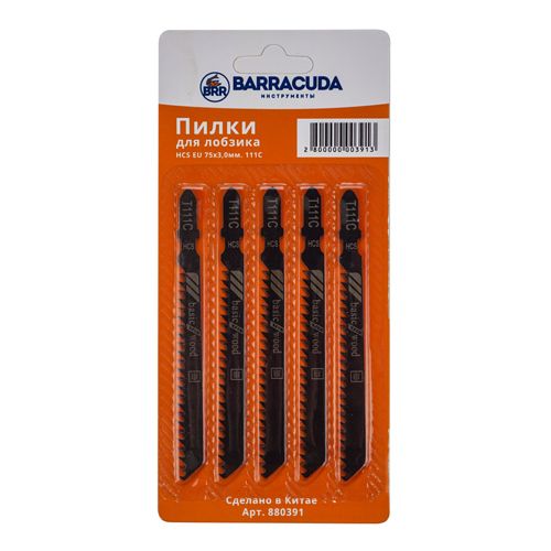 Пилки для лобзик Барракуда 111C 5шт/уп, HCS EU 75х3,0мм, дер. , пр. рез, , 1/10/400
