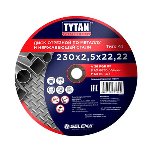 Круг отр. по металлу 230х2,5х22,22 TYTAN Professional, 5/25/100