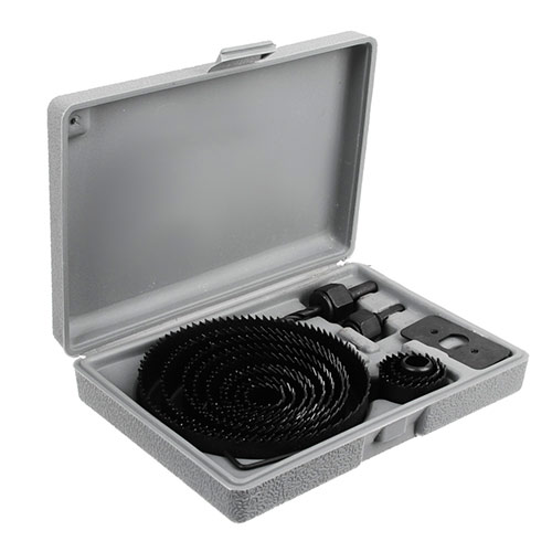 Набор пил кольцевых (17 шт; 19-127 мм) предназначен для высверливания круглых отверстий в древесине различных пород и твердости, гипсокартоне, фанере, ДСП, металле, кирпиче, бетоне и прочих материалах. Используется совместно с дрелями. Диаметр отверстий от 19 до 127 мм. В набор также включены сверла, шестигранный ключ, адаптер для кольцевых пил диаметром свыше 44 мм. Набор поставляется в пластиковом кейсе.
