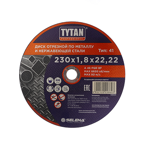 Круг отр. по металлу 230х1,8х22,22 TYTAN Professional, 10/100
