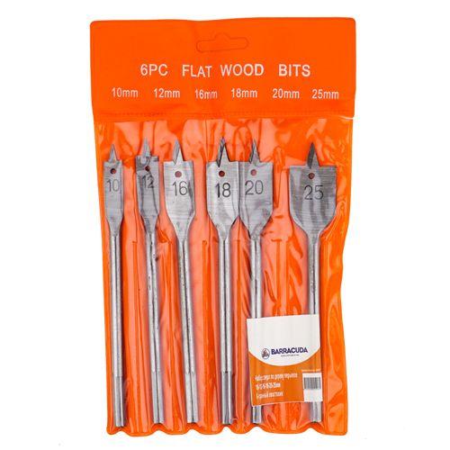 Сверло по дереву перьевое 10-12-16-18-20-25 мм Барракуда, набор 6 шт. 6-гранный хвостовик//, 1/100