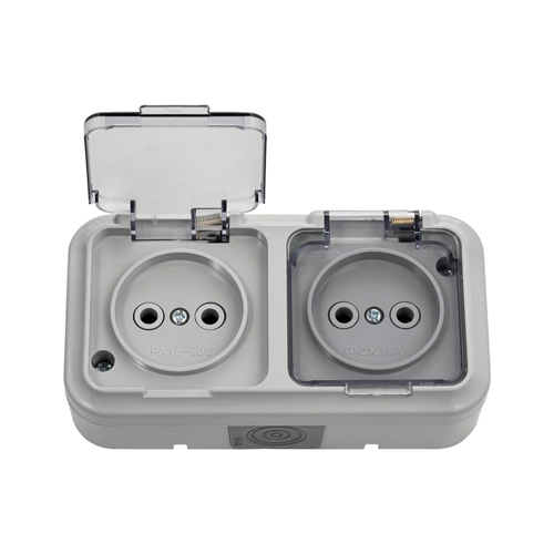 Розетка РА16-302, 02, 2ОП IP54 Пралеска Аква, СЕРАЯ, 1/8/24