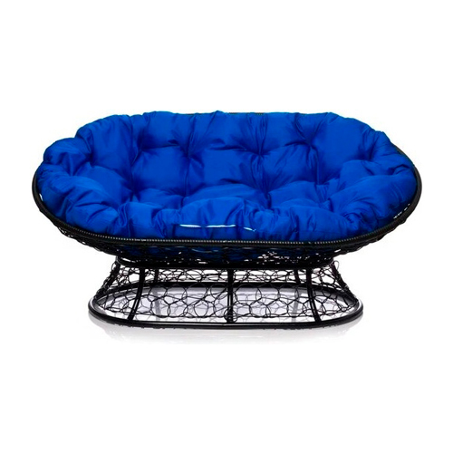 Диван МАМАСАН с ротангом 12110410 чёрное, синяя подушка