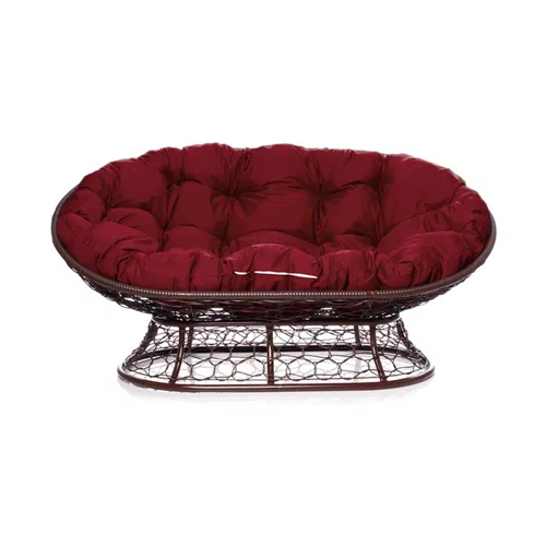 Диван МАМАСАН с ротангом 12110202 коричневое, бордовая подушка
