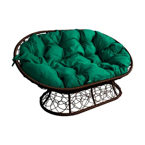 Диван МАМАСАН с ротангом 12110204 коричневое, зелёная подушка