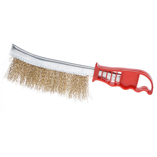 Щетка металлическая, с пластмассовой изогнутой красной ручкой, 12/240