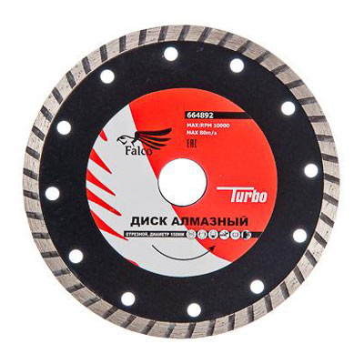 Недорогие алмазные диски FALCO ТУРБО для широкого спектра строительных материалов: кирпич, бетон, искусственный и натуральный камень. Высокая скорость врезания. Хорошо подходят для выполнения непродолжительных бытовых работ.