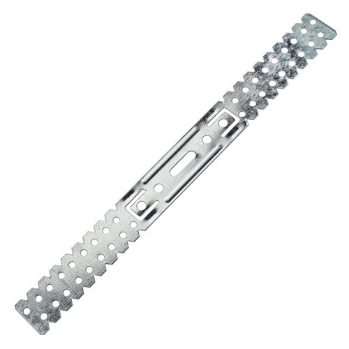 Подвес для профилей 282*60*0.8 представляет собой металлическую пластину с отверстиями и рядами перфорации для монтажа. Он предназначен для закрепления (подвески) потолочных профилей к несущим конструкциям. Закрепляется на базовом основании анкерным элементом (ж/б потолок) или дюбелем (стена). Потолочный профиль крепится к подвесу шурупами типа LN.