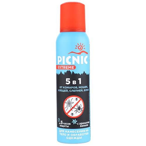 Средство от комаров Инсектицид Picnik Extreme спрей 5в1, комары, мошки, клещи, слепни, блохи, 150 мл, 6/12