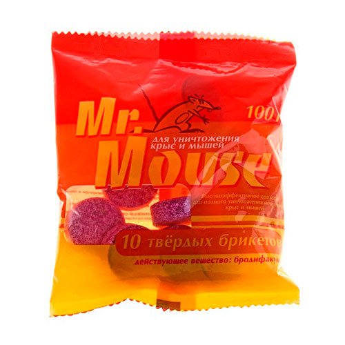 Приманка Mr.Mouse твердый парафиновый брикет предназначена для уничтожения крыс и мышей.