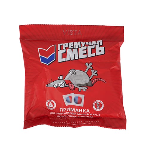 Отрава для крыс и мышей Гремучая смес 200 гр. - это эффективная защита от грызунов, которая поможет избавиться от нежелательных гостей на вашей даче или в доме. Крысиный яд, представленный в виде двухкомпонентных тесто-блоков, является идеальной приманкой, устраняя грызунов раз и навсегда. Средство от мышей и крыс в доме является надежным способом борьбы с данным вредителем. Ловушка для грызунов позволяет быстро ликвидировать полевок и других вредителей. Мышиный яд, содержащийся в данной отраве, дает надежный результат, обеспечивая защиту от грызунов. Мор для мышей и крыс является незаменимым помощником в борьбе с грызунами. Мышиная смерть наступает на 4 – 8-й день, а эффект мумифицирования избавит от неприятного запаха. Чтобы предотвратить отравление домашних животных в состав брикетов введена горечь. Норма расхода - по 20-50 гр при обработках от крыс и по 10-30 гр — от мышей и полевок. Отрава для крыс и мышей мощная поможет вам избавиться от нежелательных гостей и защитить ваше хозяйство. Будьте уверены, что с этим средством вы сможете решить проблему быстро, эффективно и безопасно. Средство желательно раскладывать пинцетом (чтобы исключить «человеческий запах»)