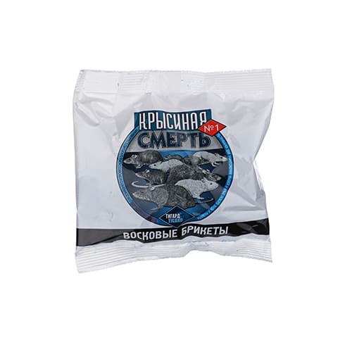Восковые брикеты от грызунов "Крысиная Смерть № 1", 50 г Высокоэффективное средство борьбы с мышевидными грызунами - достаточно однократного поедания. Обладает высокой привлекающей способностью для крыс и мышей. Активно даже в отношении грызунов, не чувствительных к другим ядам. Вызывает удушье мышей и крыс - гибель наступает, как правило, на открытых местах, а не в норах. Эффект мумификации избавит вас от неприятных запахов. Разрешен для применения в жилых и нежилых помещениях, на складах и сельскохозяйственных объектах.