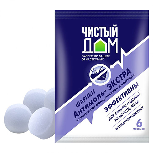 Шарики уничтожают моль и личинки.